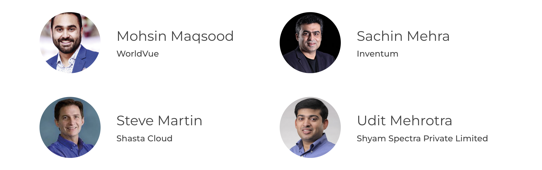 The six OpenLAN PG co-chairs include Charlie Allgrove, Senior Solutions Architect at GlobalReach; Howard Buzick, SVP of Business Development at American Bandwidth; Jack Raynor, Engineering Lead at Meta; Mohsin Maqsood, Director of Product Innovation at WorldVue; Sachin Mehra, Managing Director and Founder of Inventum; and Steve Martin, CEO and co-founder of Shasta Cloud.