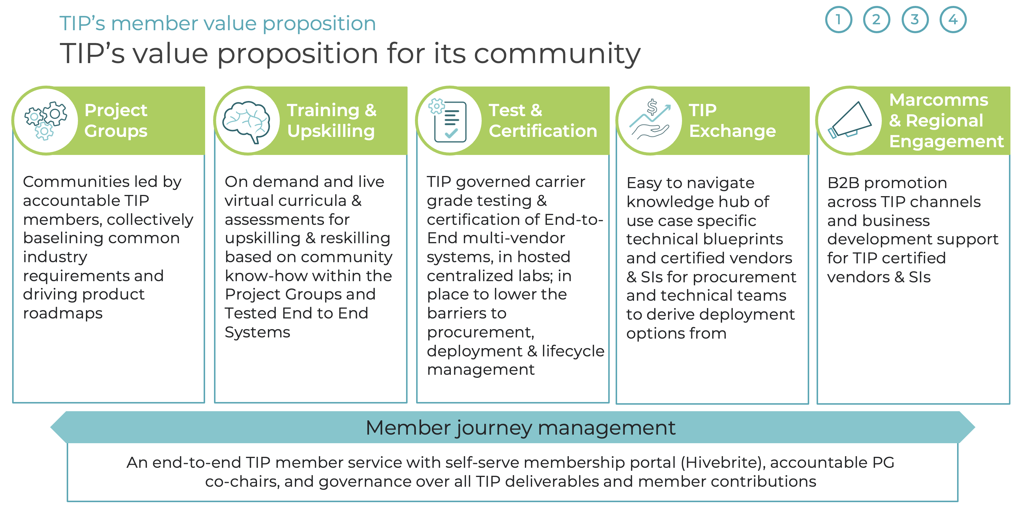 As we are approaching Fyuz23 and we reflect on our journey, our community’s innovation and collective spirit continue to drive us forward. Thank you for being the cornerstone of TIP’s success. Participants can access exclusive benefits such as Testing and Certification, a marketplace TIP Exchange, the TIP Academy, and Marketing and Regional Engagement. TIP’s Project Groups focus on developing requirements documents, MVPs, White Papers, and Lab and Field Trial results to prepare solutions for deployment.