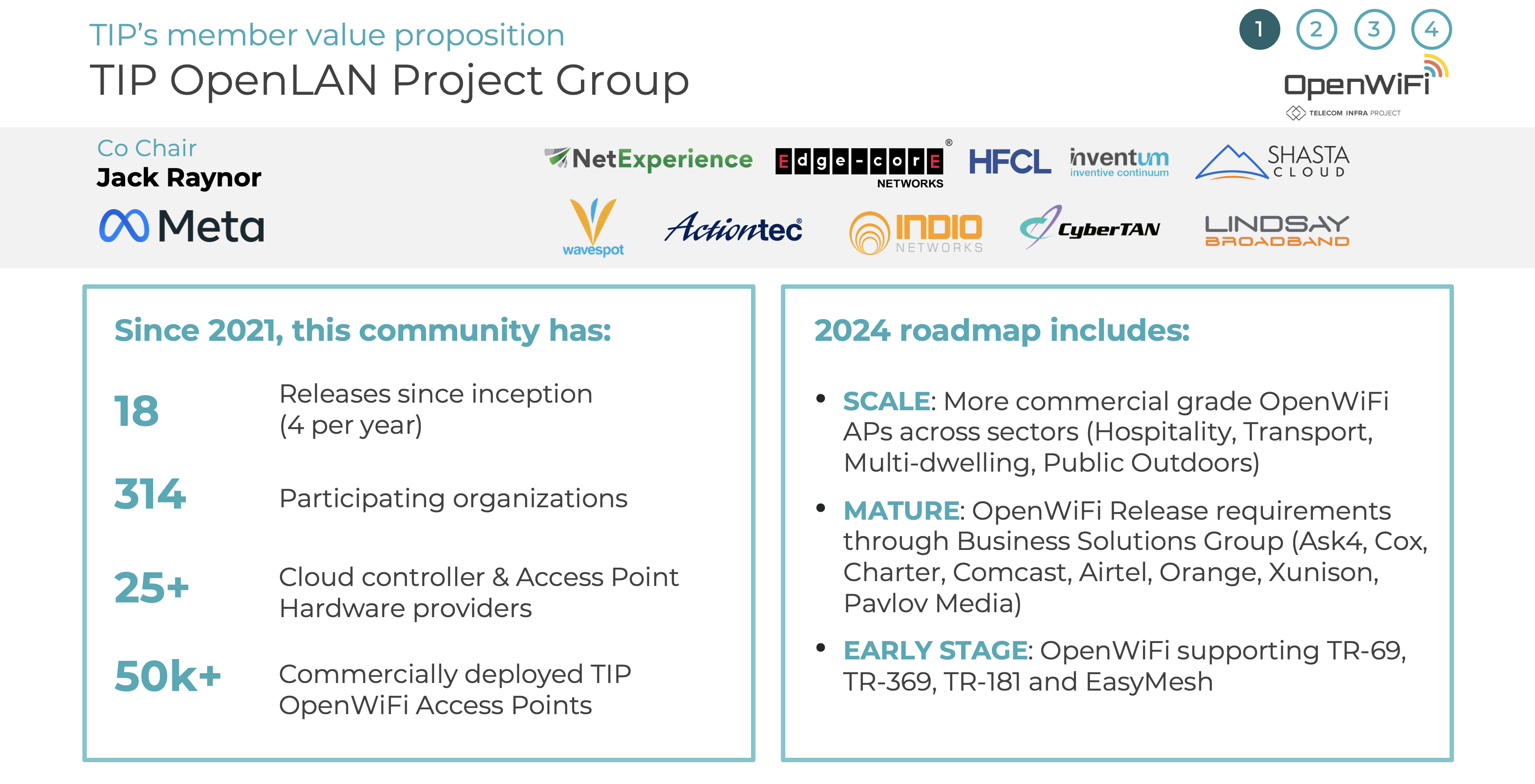 OpenLAN welcomed some amazing commercial deployments and industry accolades; a cricket stadium deployment at Supersport Park in South Africa, a new commercial model to provide Wi-Fi in Kenya and the entry of multiple cable and broadband providers using OpenWiFi into the community. CableLabs and OpenLAN were very proud to expand on the relationship between CableLabs and TIP with the CableLabs Community Lab. OpenLAN also made available a series of instructional videos, and participated in several industry events, including multiple Wireless Broadband Alliance and Wi-Fi Now events. OpenLAN also had a very visible and successful presence at HiTec, and is looking forward to participating at the CableLabs SCTE event. On the personnel front, OpenLAN is particularly proud of the recognition of the OpenLAN co-chair, Jack Raynor, who was voted as a Light Reading MVP for 2023.