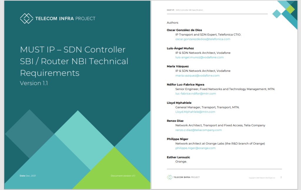 A worldwide top-ranked Network Operators group, formed by Telefonica, Vodafone, MTN, Telia Company,Deutsche Telekom and Orange, have joined efforts to collaborate on Open Transport SDN within the Telecom Infra Project Open Optical and Packet Transport (OOPT) project group. These operators will be leading a new workstream called MUST (MUST: Mandatory Use case requirements for SDN for Transport). This White Paper presents the common architectural view, the use case-based methodology and the selection of the most relevant standard interfaces to be implemented by the industry.