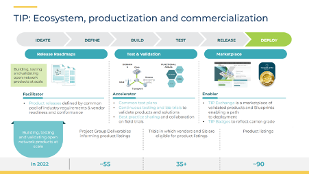 As far as Open RAN is concerned, he explained that TIP is focused on productization. The traditional approach consists of operators speaking to vendors on a bilateral basis to ensure they receive the features and profile for the type of deployment they have. While this can work nicely for incumbent vendors, it becomes tricky with a large number of vendors, some of whom may not have the scale to talk to the large number of operators.