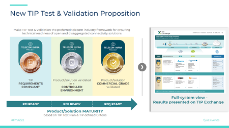 David went on to explain that the test & validation (T&V) process has been revamped to support a three-tier badging system – bronze, silver, gold – which is based on TIP’s T&V Framework and demonstrates the increasing maturity and interoperability of individual products, product combinations, or solutions.