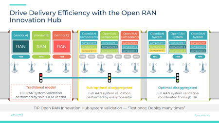Keeping the traditional mindset to do testing for disaggregated networks won’t allow operators to benefit from the testing economy of scale or accelerate deployments of Open RAN networks. TIP Innovation Hub, a federated fulfilment model, aims to solve this problem by “Test once; Deploy many times” approach.