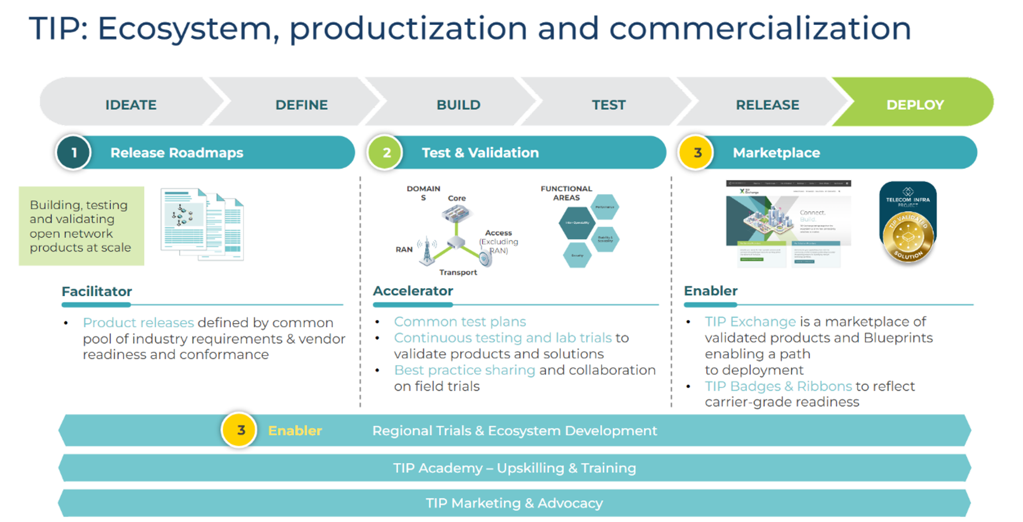 When TIP was founded in 2016, it was founded on three simple principles. The first was to act as a facilitator for global industry to enable an ecosystem of vendors, mobile operators, system integrators, regulators, etc. to develop, test and deploy open and disaggregated solutions across RAN, transport and core.