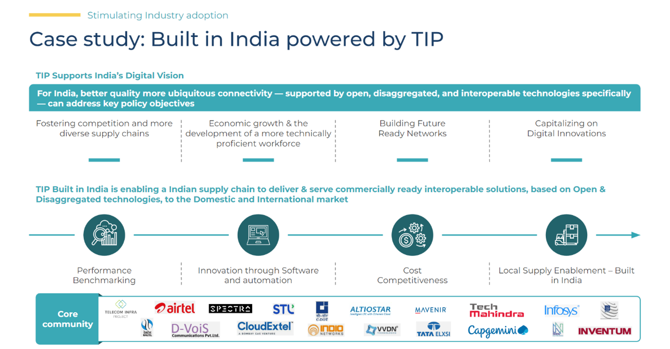 TIP built in India is another such initiative that is being driven by TIP to enable Indian supply chain to deliver and serve commercially ready interoperable solutions, based on open and disaggregated technologies, to the domestic and international market.