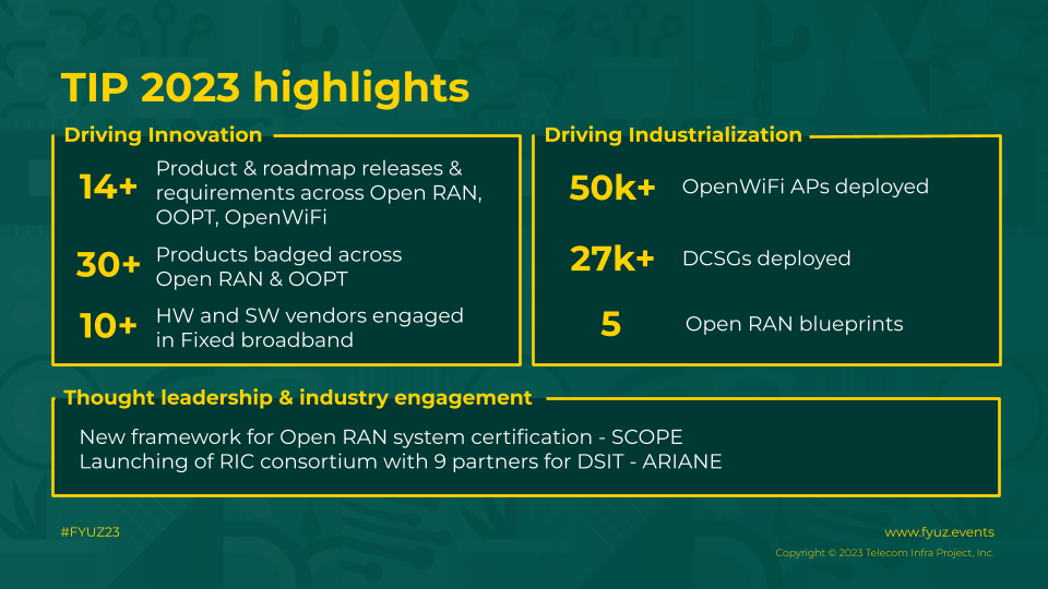 Now in its third edition, the theme of Fyuz 24 is “Accelerate,” embodying TIP’s commitment to catalyzing innovation and the commercialization of open and disaggregated technologies.