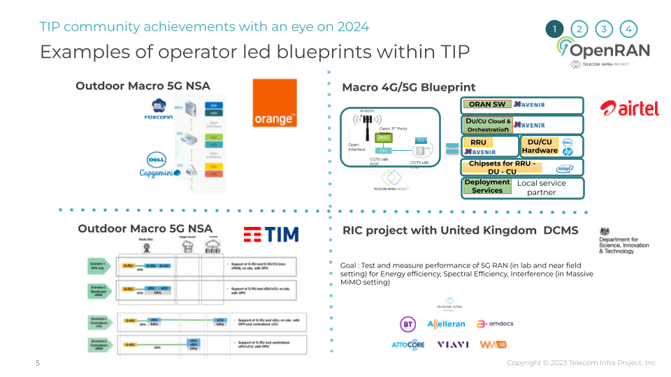 In addition, TIP created the OpenRAN Blueprint definition Macro/Outdoor deployment (scenario 3)