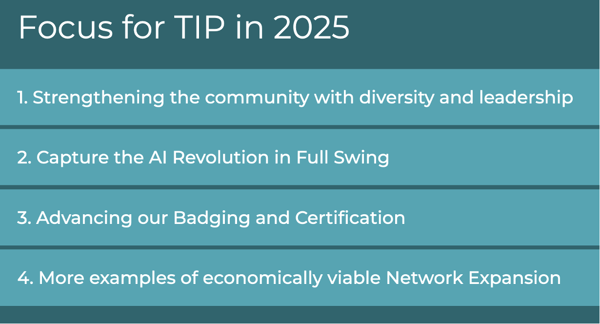 As TIP moves into 2025, its focus remains on fostering collaboration, driving innovation, and advancing the telecom ecosystem toward open, sustainable, and scalable solutions. With an ever-growing community of members and supporters, TIP is well-positioned to shape the future of connectivity on a global scale.