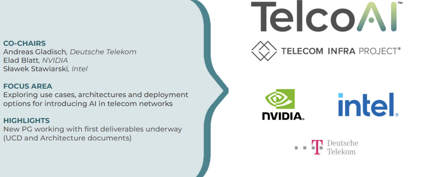 TIP launched its newest Project Group, TelcoAI, in May 2024. The Project Group targets to enable operators to use AI faster and at scale. The TelcoAI PG will focus on different options for implementing AI in telecommunications networks. This includes the use of edge, regional, and centralized data centers in operator infrastructure for AI, as well as the use of public cloud options where applicable.
