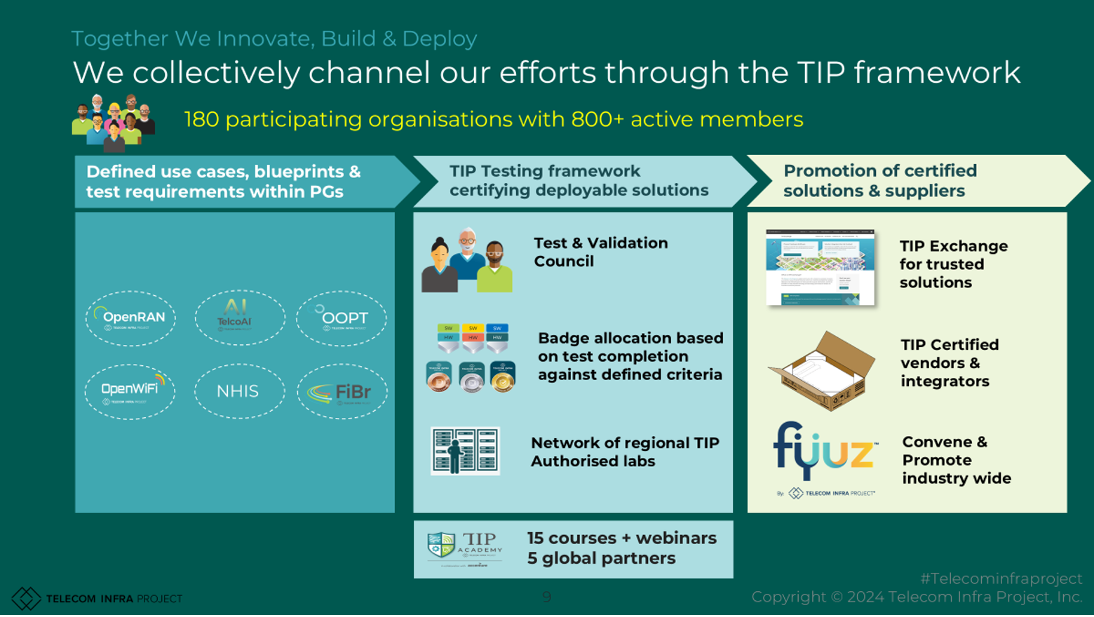 At its heart, TIP is about more than just technology—it’s about building trust and delivering deployable solutions through the TIP test & certification framework. At the same time, TIP remains committed to offering members space to explore new areas of innovation.